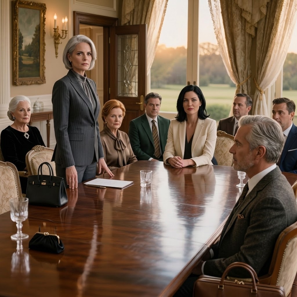 Han kiggede op fra papirerne, og hans øjne fandt mine hen over det brede mahogniskrivebord. I et splitsekund så jeg medlidenhed i hans blik. “Og nu,” sagde han med en rolig og klar stemme, “kommer vi til afhændelse af de primære aktiver, herunder alle aktier i Foster Logistics, familiens ejendomme og alle likvide konti, i alt anslået til 26 millioner dollars.”